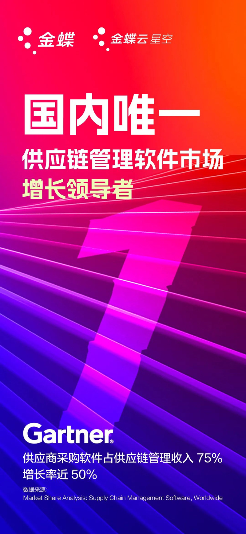近日,全球权威信息技术研究和顾问公司Gartner发布了《Market Share Analysis: Supply Chain Management Software, Worldwide》报告,金蝶被评为供应链软件市场的增长领导者,并成为国内唯一获得此认证的厂商!
